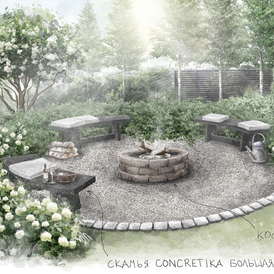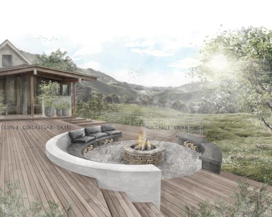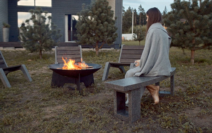 В единой стилистике с чашами и подставками, мы производим скамьи для костровых зон из фибробетона. Обычно, вокруг костровой чаши устанавливают 3 скамьи, создавая завершенный круг.